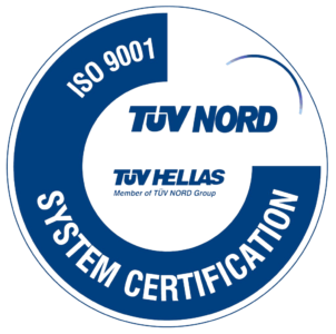 Η πιστοποίηση της εταιρείας έχει πραγματοποιηθεί από τον Οργανισμό Επιθεώρησης και Πιστοποίησης TÜV HELLAS (TÜV NORD).